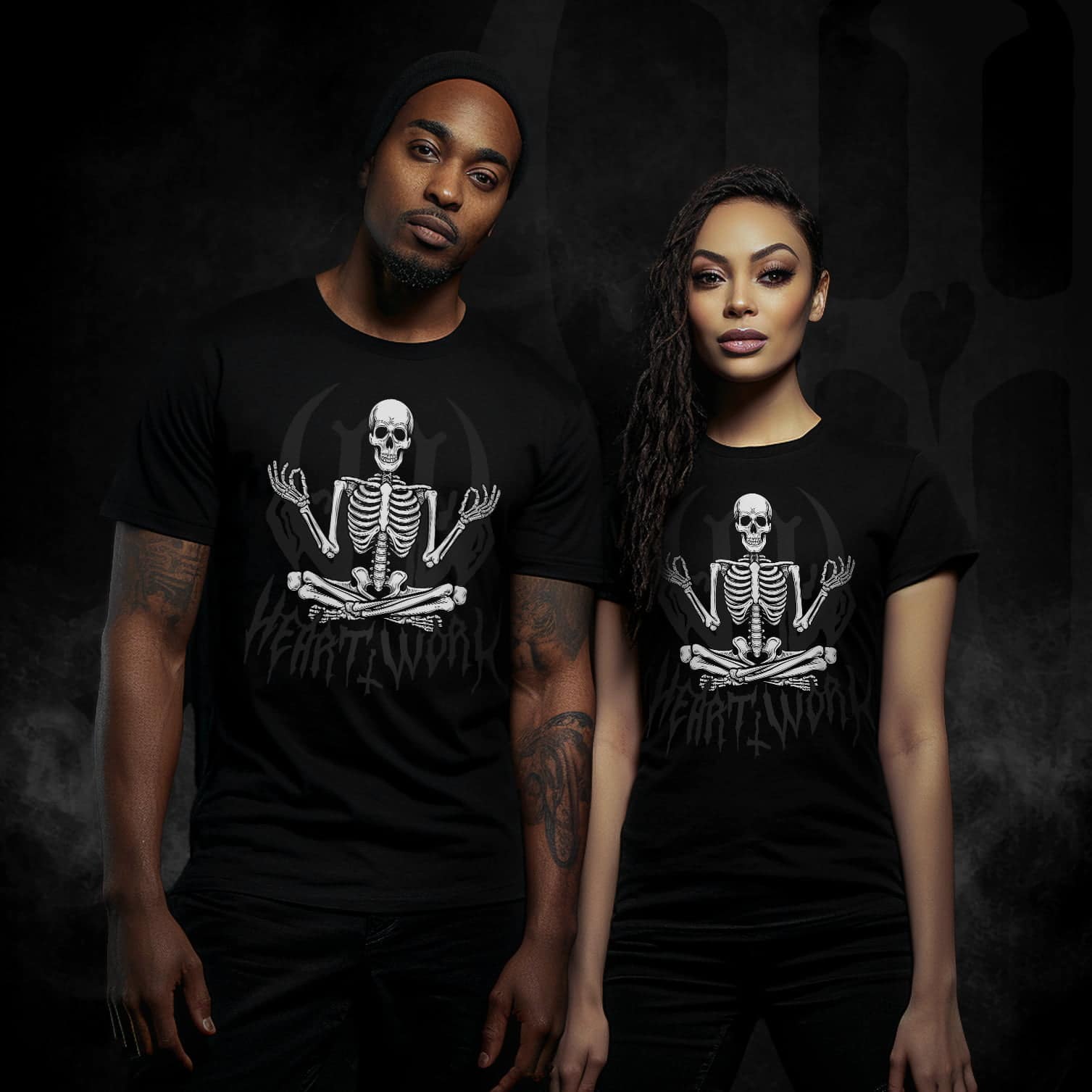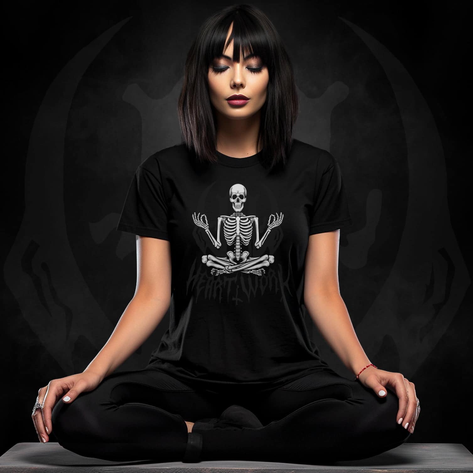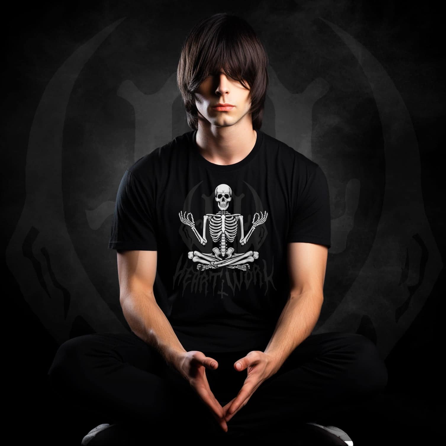 Here we invite you to explore the harmonious fusion of alternative living and the transformative power of meditation. At its heart, this design features a serene and enlightened skeleton, seated in a meditative pose.